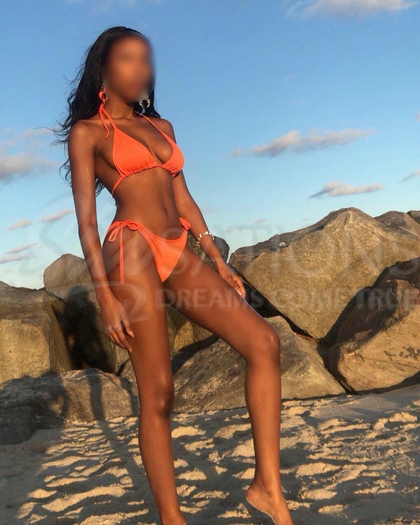 is a 5'4, slender, 26 year old black woman with black hair and black eyes. Available for men.