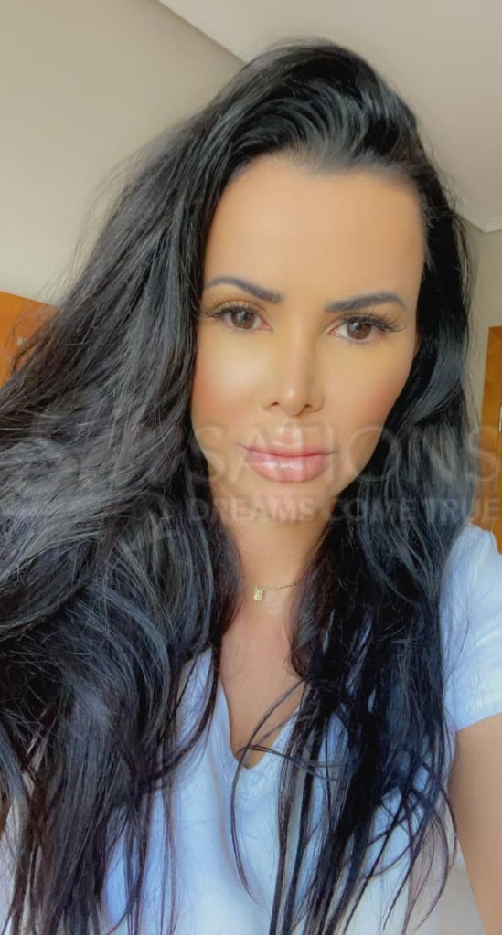 is a 5'4, athletic, 37 year old latina woman with brunette hair and brown eyes. Available for men.